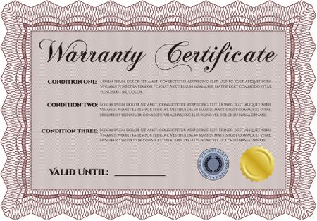 Sample Warranty certificate. With background. Very Detailed. Complex design.