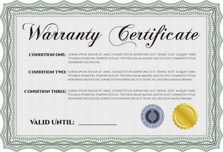 Sample Warranty certificate. With complex background. Perfect style. Complex frame.