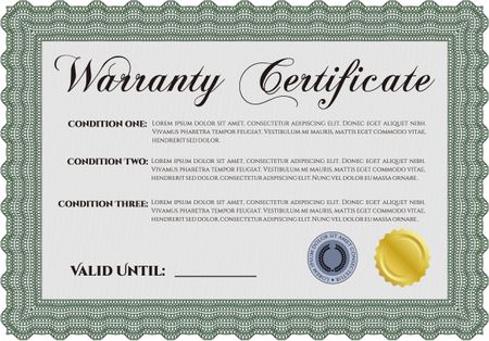 Sample Warranty certificate. Complex border design. With sample text. Retro design.