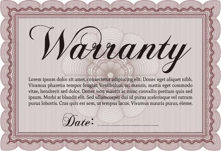 Sample Warranty certificate. Complex border design. With complex background. Retro design.