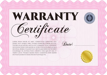 Sample Warranty certificate. Complex frame design. Retro design. With background.