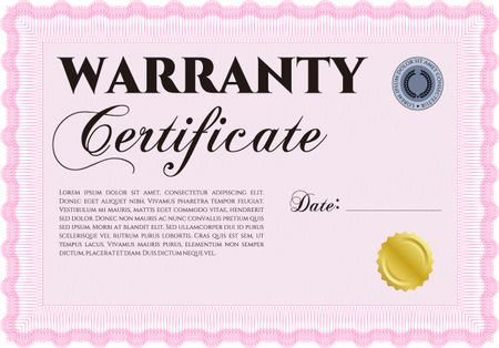 Sample Warranty certificate. With complex linear background. Vector illustration. Excellent complex design.