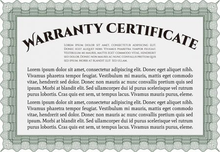 Sample Warranty certificate. With complex linear background. Vector illustration. Excellent complex design.