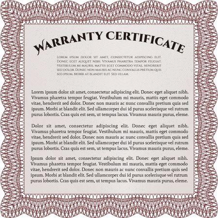 Sample Warranty certificate. With complex linear background. Artistry design. Vector illustration.