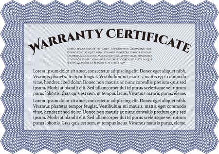 Sample Warranty certificate. With complex linear background. Vector illustration. Artistry design.
