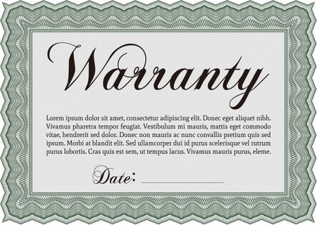 Sample Warranty certificate. Excellent complex design. Vector illustration. With guilloche pattern and background.