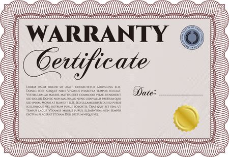 Sample Warranty certificate. Excellent complex design. With complex linear background. Vector illustration.
