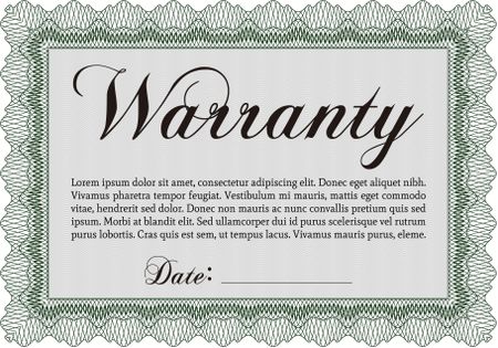 Sample Warranty certificate. Excellent complex design. Vector illustration. With complex linear background.