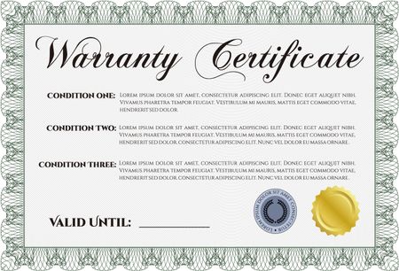 Sample Warranty certificate. Perfect style. Easy to print. Complex border design.