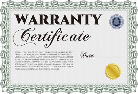 Sample Warranty certificate template. With background. Retro design. Complex frame design.