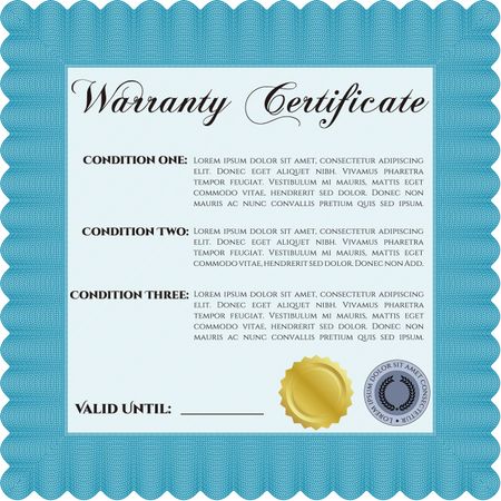 Sample Warranty certificate template. Complex border. With sample text. Very Detailed.