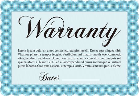 Sample Warranty certificate template. Complex border design. Very Detailed. With complex background.
