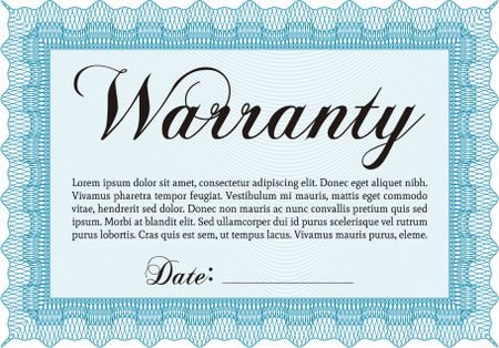 Sample Warranty certificate template. Elegant design. Vector illustration. With guilloche pattern.