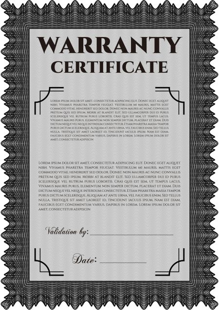 Sample Warranty certificate template. Elegant design. Vector illustration. With guilloche pattern.