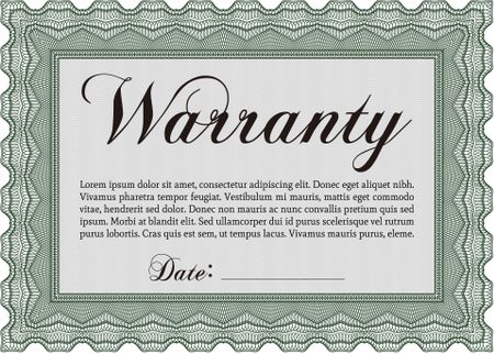 Sample Warranty certificate template. With guilloche pattern. Vector illustration. Elegant design.