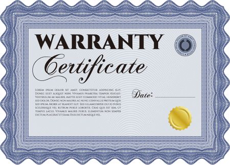 Sample Warranty certificate template. With guilloche pattern and background. Elegant design. Vector illustration.