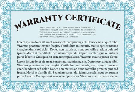 Sample Warranty certificate template. With guilloche pattern. Elegant design. Vector illustration.