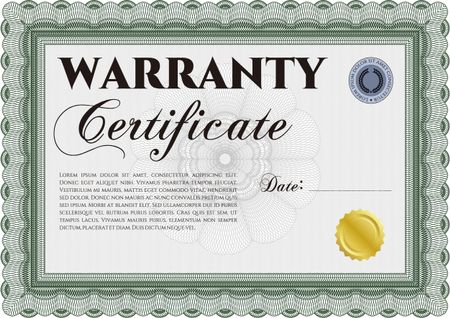 Sample Warranty certificate template. Perfect style. With sample text. Complex frame design.