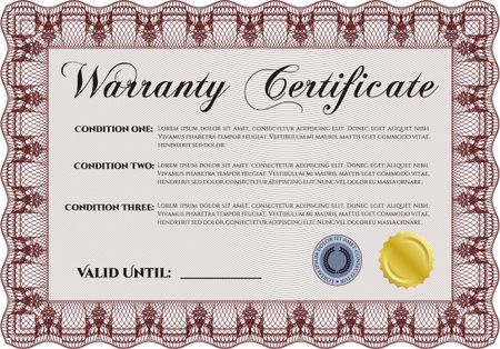 Sample Warranty certificate template. Perfect style. With background. With sample text.