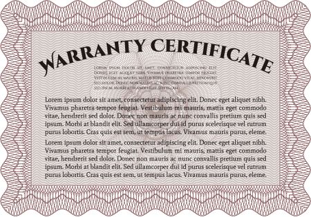 Sample Warranty certificate template. Retro design. With sample text. Complex design.