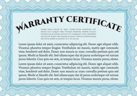 Sample Warranty certificate template. With sample text. With background. Retro design.