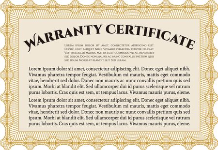 Sample Warranty certificate template. Vector illustration. Elegant design. With guilloche pattern.