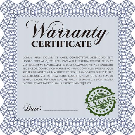 Sample Warranty certificate. Vector illustration. Artistry design. With complex linear background.