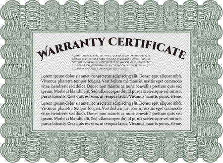Sample Warranty certificate. Vector illustration. Complex border. It includes background.