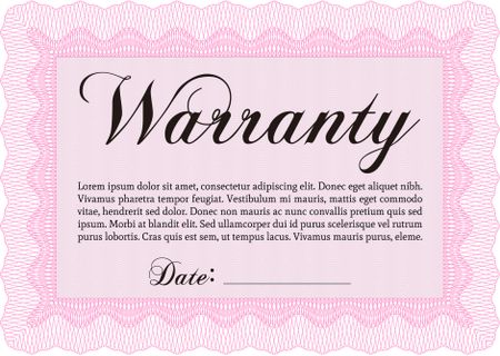 Sample Warranty certificate. Very Customizable. Complex frame design. With background.