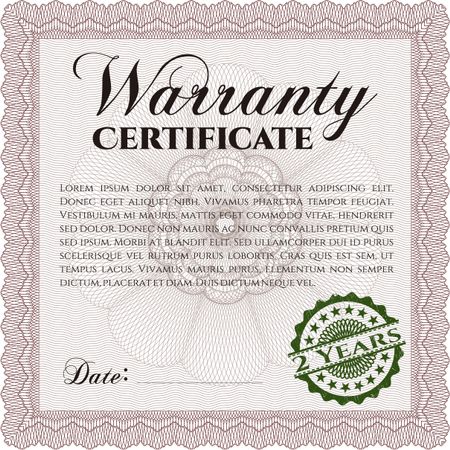 Sample Warranty. With complex linear background. Artistry design. Border, frame.