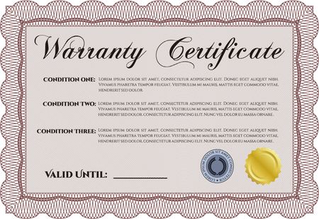 Sample Warranty template. Complex design. Vector illustration. With sample text.