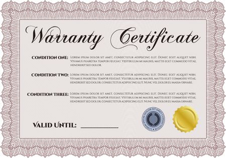 Sample Warranty template. Complex frame. Very Customizable. With background.