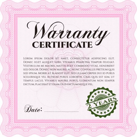 Sample Warranty template. Retro design. With guilloche pattern.