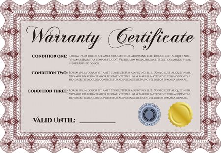 Sample Warranty. Very Detailed. Complex border. With sample text.