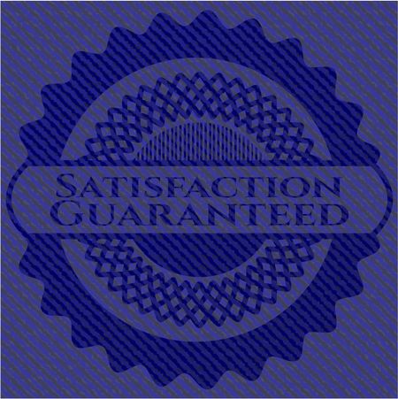 Satisfaction Guaranteed badge with denim background