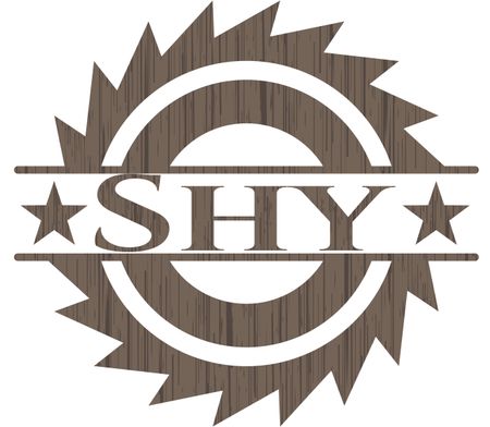 Shy badge with wooden background