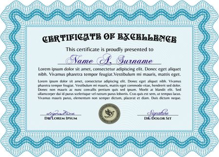 Sky blue Certificate, Diploma of completion with guilloche pattern and background, border, frame. Certificate of Achievement, Certificate of education, awards, winner.