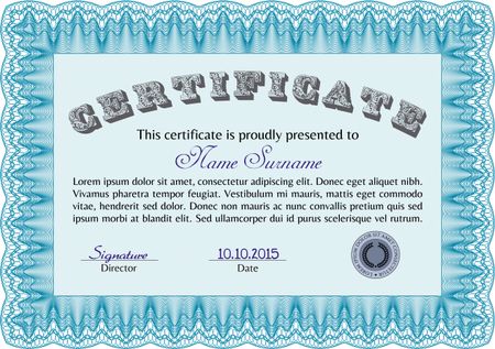 Sky blue certificate or diploma template