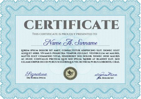 Sky blue Vector illustration of detailed certificate (diploma)
