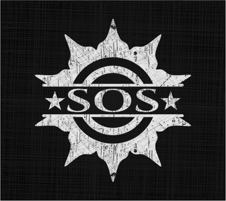 SOS chalkboard emblem written on a blackboard