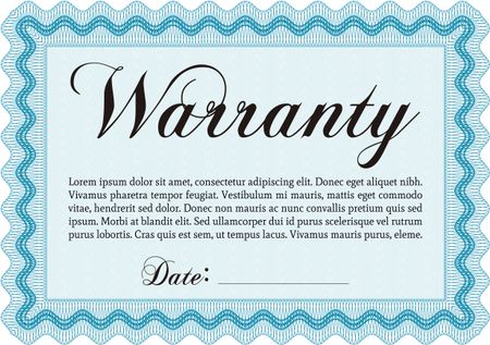 Template Warranty certificate. Complex frame and background. Perfect style.