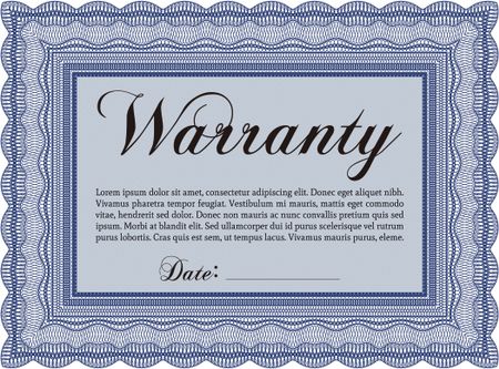 Template Warranty certificate. Perfect style. With complex background. Complex frame design.