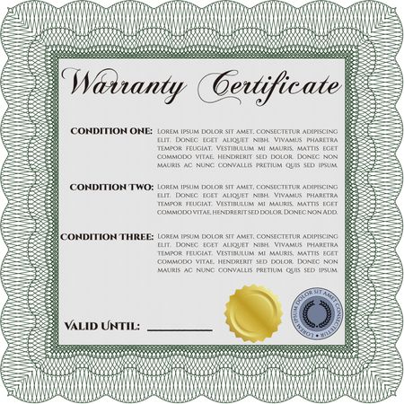Template Warranty certificate. With quality background. Border, frame. Lovely design.