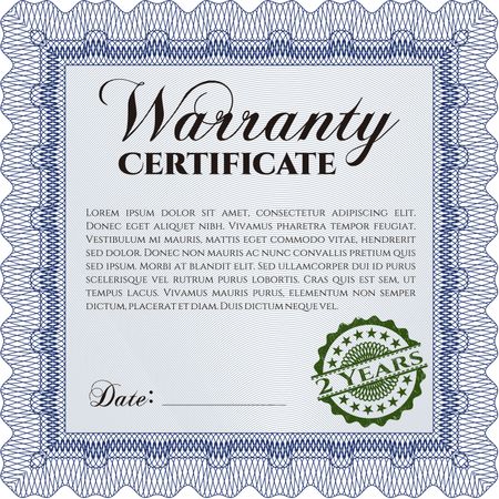 Template Warranty certificate. With quality background. Border, frame. Lovely design.