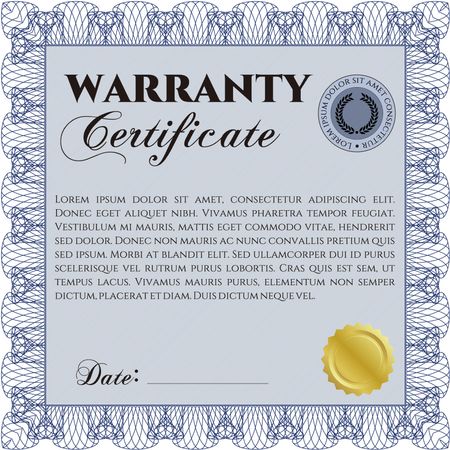 Template Warranty certificate. With quality background. Lovely design. Border, frame.
