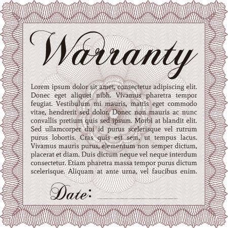 Template Warranty certificate. With quality background. Lovely design. Border, frame.