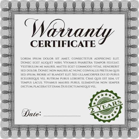 Template Warranty certificate. With quality background. Superior design. Border, frame.