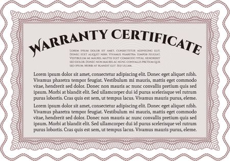 Template Warranty certificate. Retro design. Complex frame. It includes background.