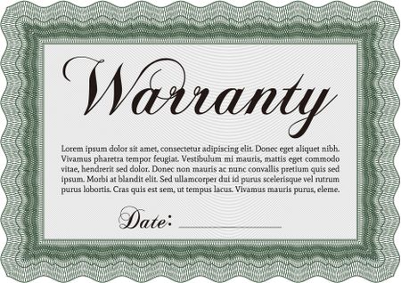 Template Warranty certificate. Superior design. With quality background. Border, frame.