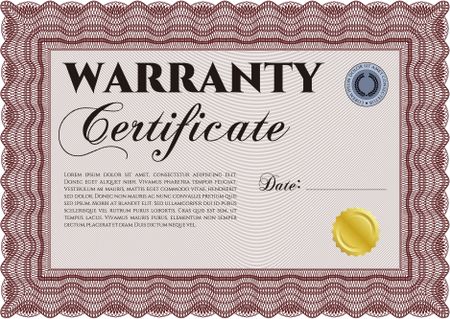 Template Warranty certificate. Superior design. With quality background. Border, frame.